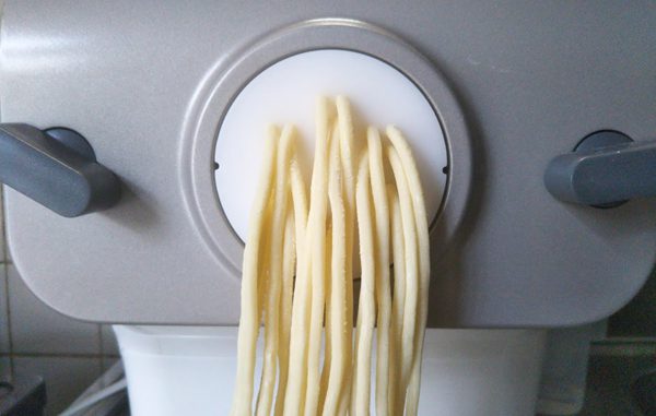 我が家ではラーメン作りで活躍する機会が多いヌードルメーカーですが、パスタ・うどん・そば等も製麺することもでき、アタッチメントを変えると細麺や太麺、平打麺、そして餃子の皮まで作れます。