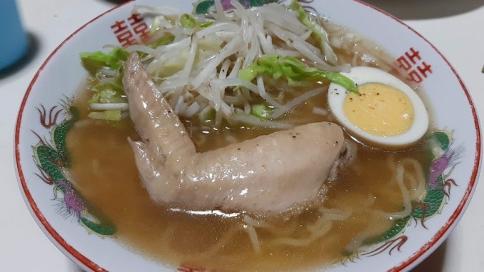 夕ご飯で食べた手羽先を利用して、ラーメンを作ってみました。