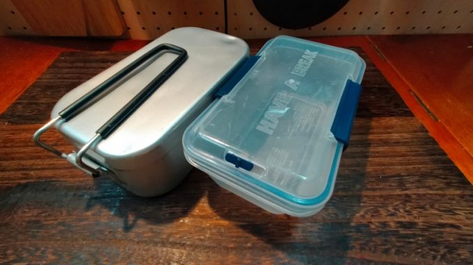 しかもこの弁当箱、重ねることもできるので、とてもコンパクトにしまうことができます。私は年間数多くのキャンプに行きますので、メスティンのように収納性に優れているのは、とても重要なポイントだったりします。このセリアの100円弁当箱は、3つ重ねてもメスティン1個分とほぼ同等の大きさに収まりのも、お薦めポイントのひとつです。
