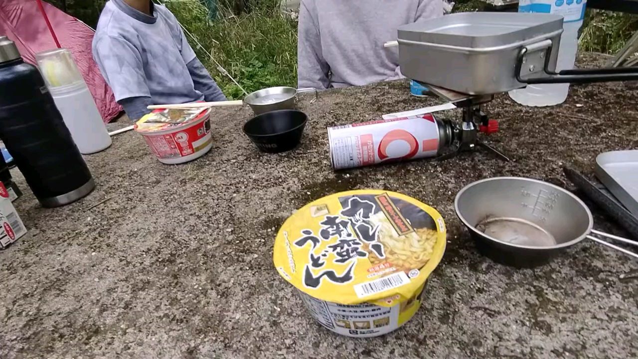 翌朝は、冷え込んだ身体を温めるためにカップラーメンをチョイス。お洒落なパン料理等も良いですが、撤収時間なども考えると、簡単かつ美味しくて間違いない料理。森林の冷たい空気と湯気立つスープの対比が、何ともいえない癒しを与えてくれました。