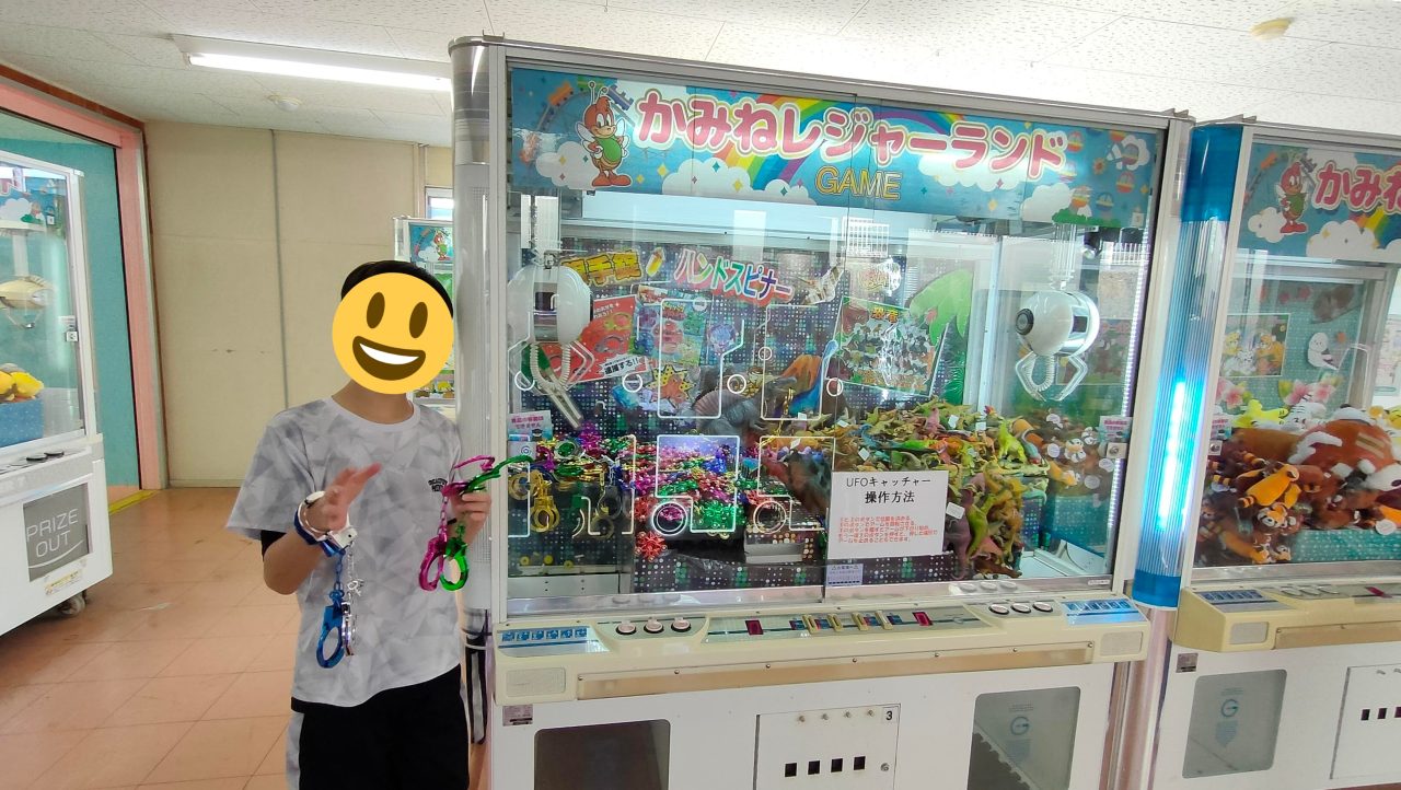 「ゲームセンター」もあります。UFOキャッチャーを中心に、バスケットボールのゴール点数を競うゲームなど、体感型のゲームが揃っていました。息子はUFOキャッチャーで、100円で4個まとめておもちゃの手錠をゲットし、とても喜んでいました。